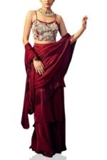 Saree Trends Women's Faux Georgette ready to wear Frill saree with unstitched blouse ₹9,000.00